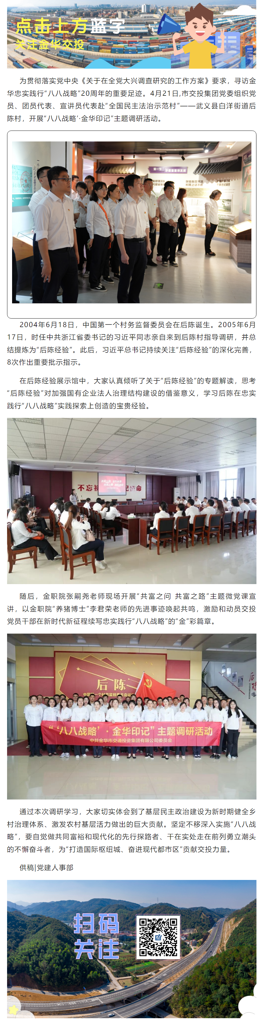 市交投集團(tuán)黨委組織開展“八八戰(zhàn)略·金華印記”主題調(diào)研活動