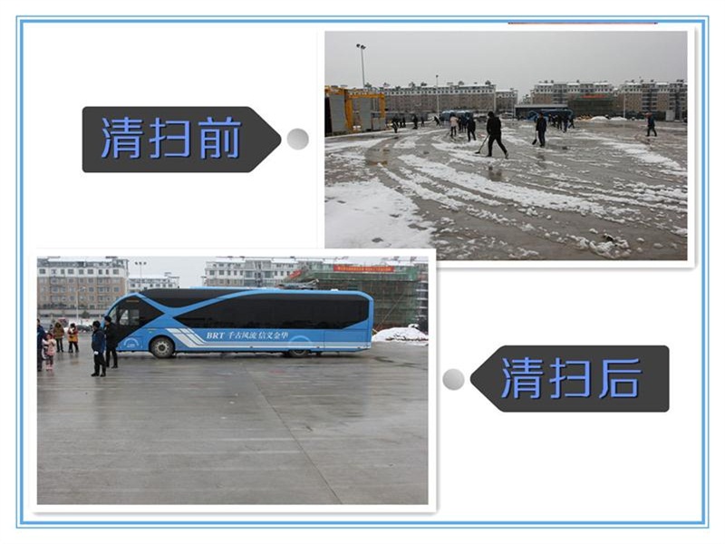 1月23日上午,金華市交通建設(shè)投資有限公司董事長帶隊,組織本部員工、金華市公鐵聯(lián)運港有限公司、金華交投汽服有限公司、金華市鐵路建設(shè)投資有限公司、金華市快速公交有限公司共40余人,在BRT婺城樞紐站清除積雪,掃凈積水,保證了快速公交能順利出行。