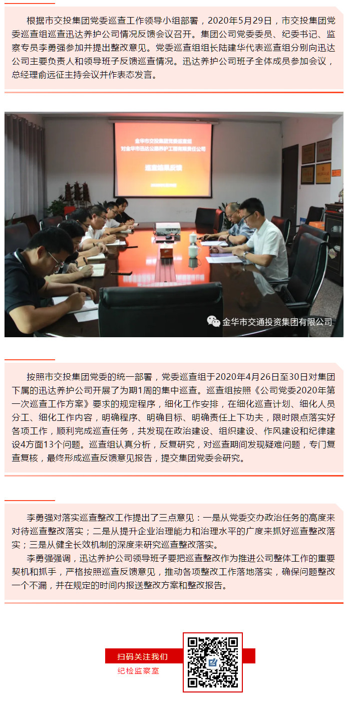市交投集團(tuán)黨委巡查組向迅達(dá)養(yǎng)護(hù)公司反饋巡查情況