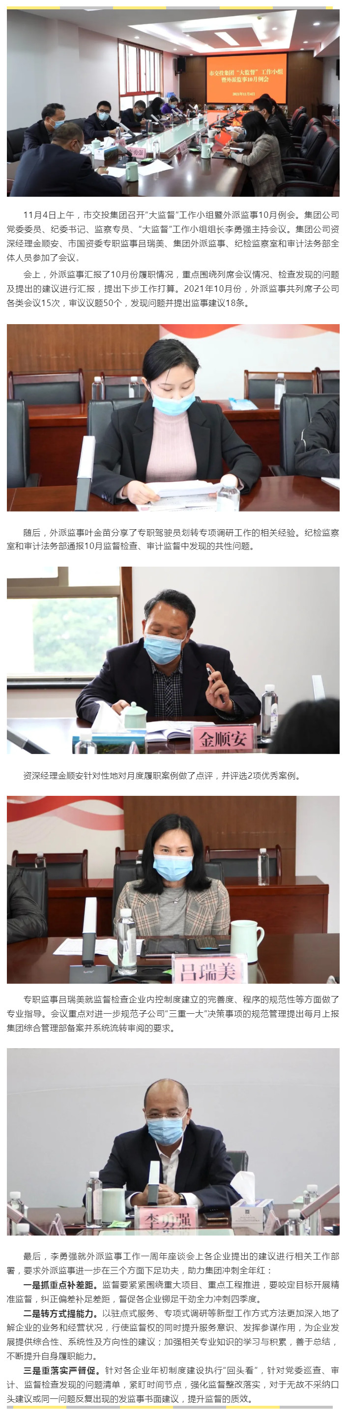 市交投集團召開“大監(jiān)督”工作小組暨外派監(jiān)事10月例會