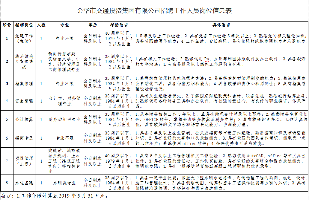 2.資格條件。詳見附件《金華市交通投資集團(tuán)有限公司招聘工作人員崗位信息表》。